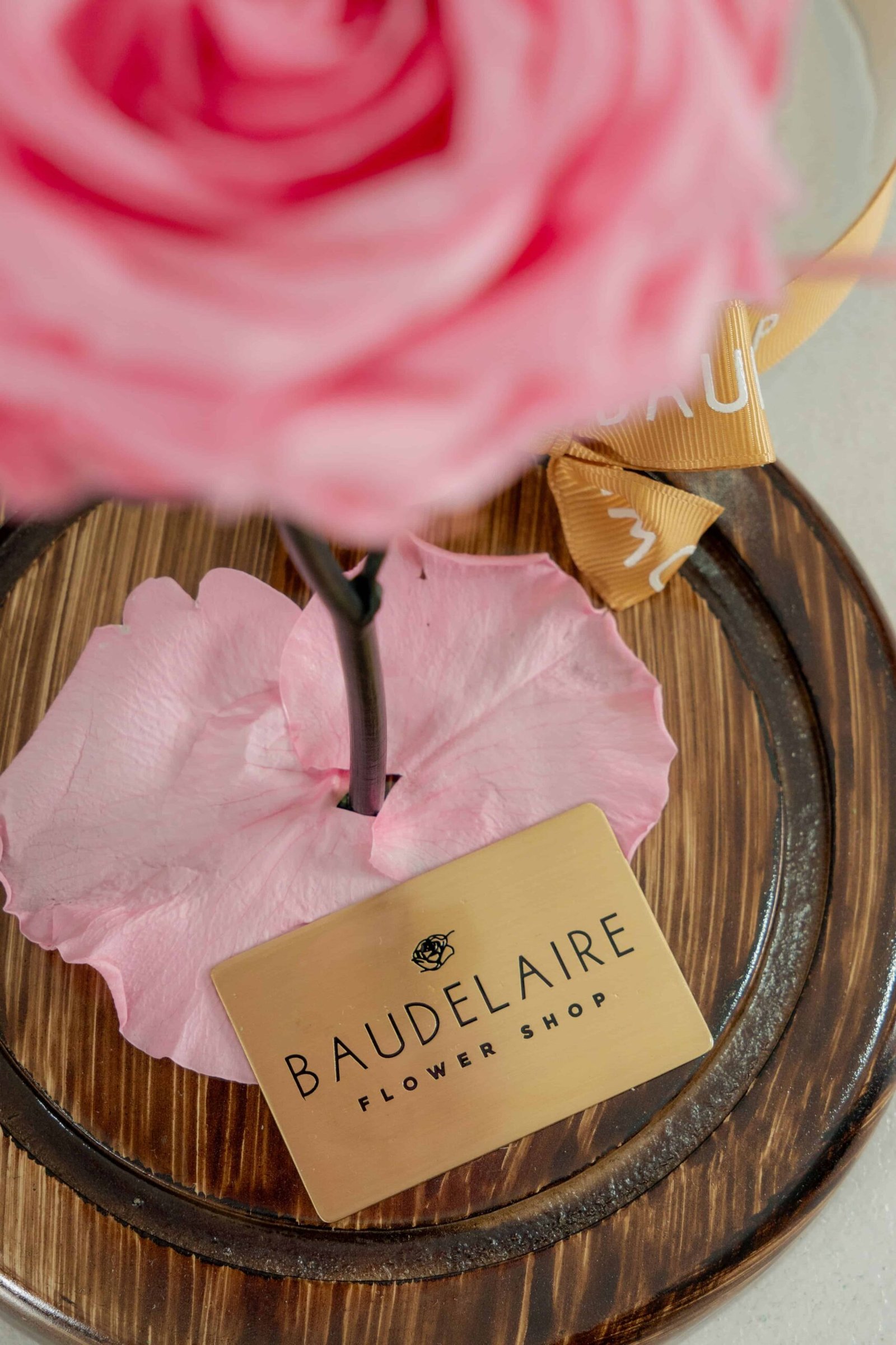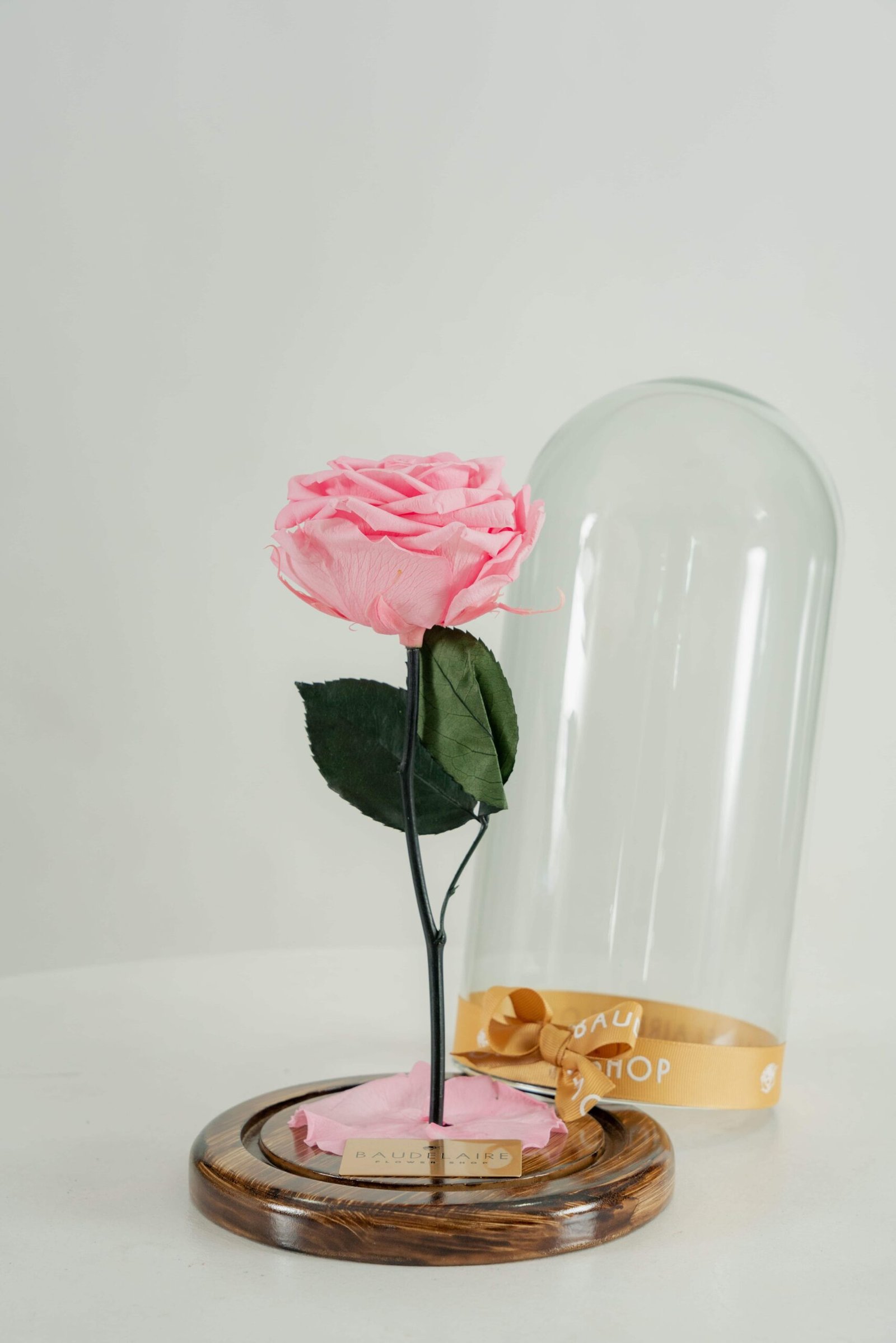 – Rosa rosada preservada: Mantenida en su estado natural para conservar su belleza.